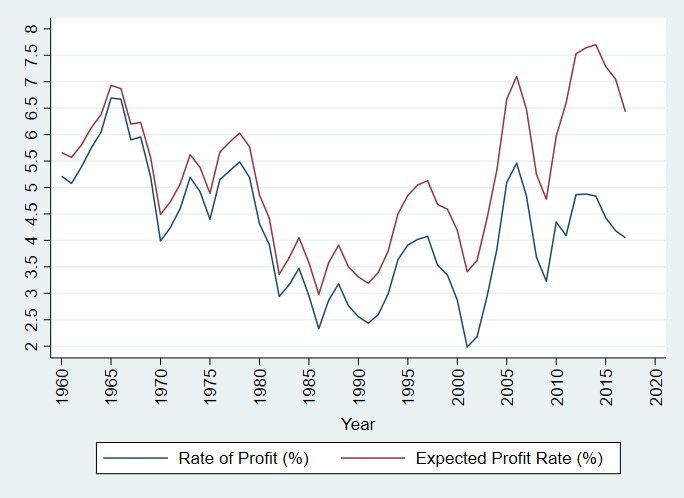 Figure C. Expected and Actual Rates of Profit for the US Private Sector for the years 1960-2017.